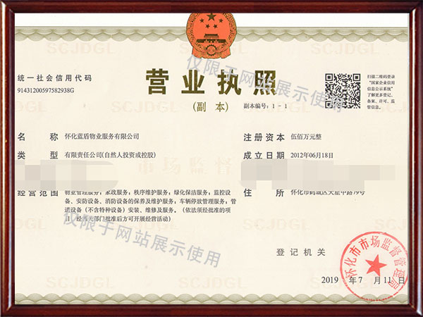 懷化藍(lán)盾物業(yè)服務(wù)有限公司成立于2012年6月,注冊(cè)資金人民幣500萬元整。主營業(yè)務(wù)范圍包括:物業(yè)管理服務(wù)、家政服務(wù)、秩序維護(hù)服務(wù)、綠化保潔服務(wù);監(jiān)管設(shè)備、安防設(shè)備、消防設(shè)備的保養(yǎng)及維護(hù)服務(wù);車輛停放管理服務(wù);管道設(shè)備(不含特種設(shè)備)安裝、維修及服務(wù)。公司設(shè)有總經(jīng)理辦公室、財(cái)務(wù)部、行政部、秩序維護(hù)部等部門。
